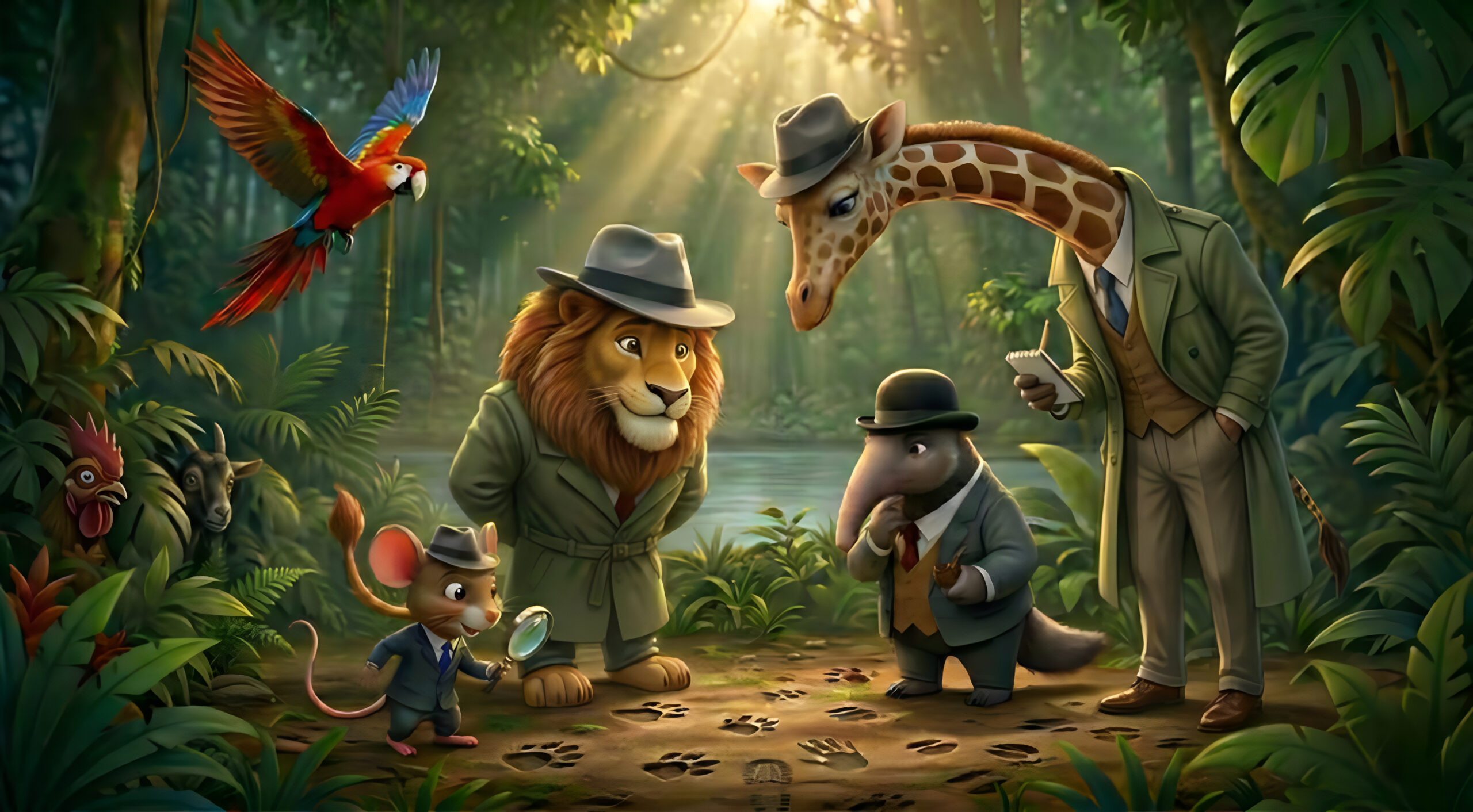 Zwierzęta Detektywi stają przed wyzwaniem, które wymaga nie tylko sprytu, ale i międzynarodowej współpracy! Po odkryciu, że za miłosnym chaosem w dżungli stoi tajemnicza mikstura, która trafiła do jeziora, drużyna musi działać szybko.